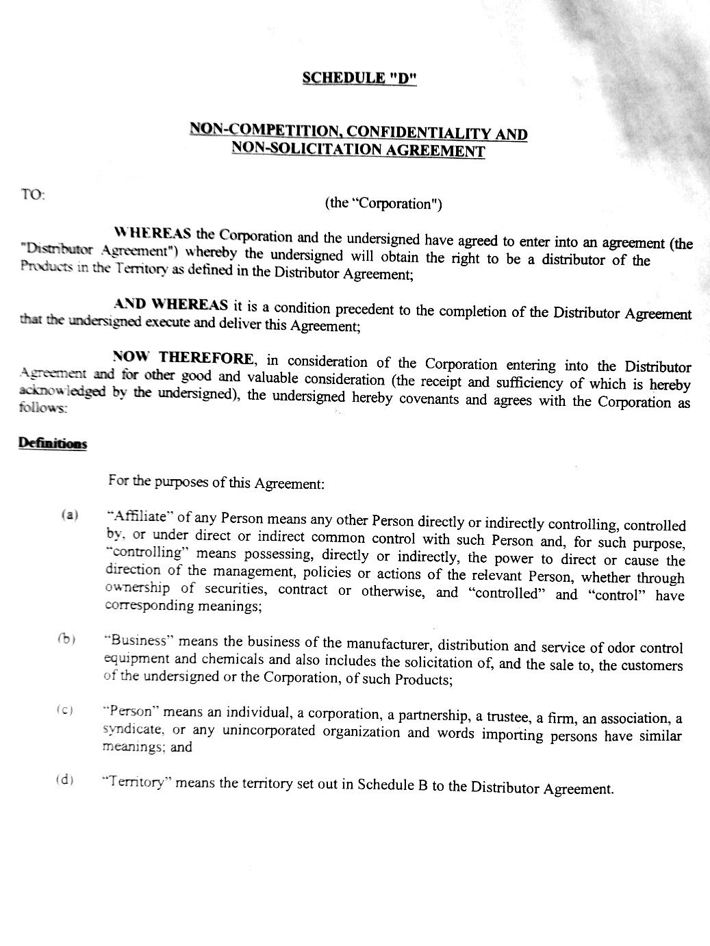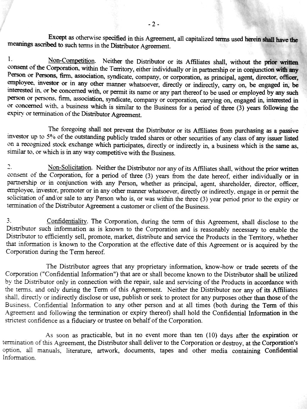 - Non-competition Agreement